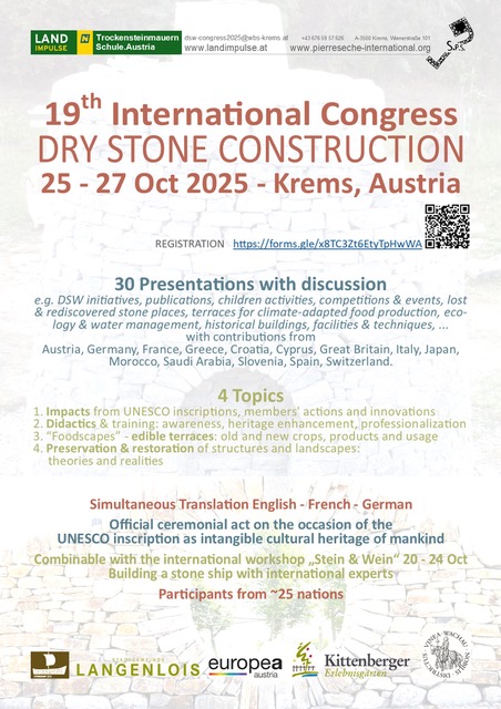 19° Congrès International sur la Pierre Sèche Krems, Wachau, Autriche, Octobre 2025